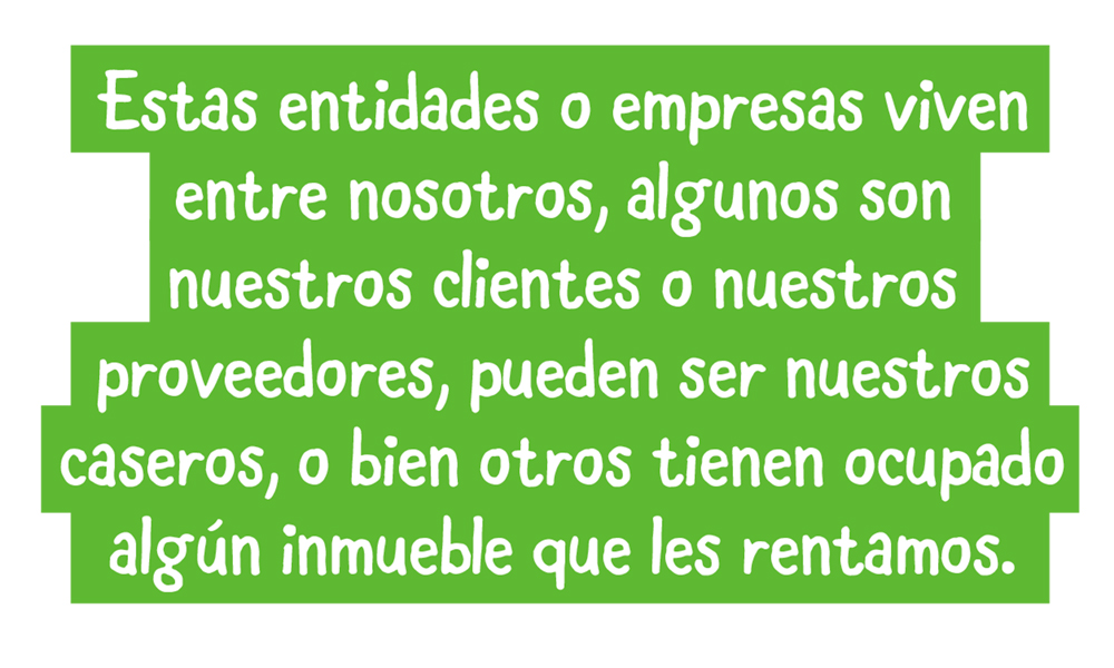 Estas entidades o empresas viven entre nosotros, algunos son nuestros clientes o nuestros proveedores, pueden ser nuestros caseros, o bien otros tienen ocupado algún inmueble que les rentamos (y a quienes quizás les hemos condonado sus rentas o parte de ellas, derivado de la crisis). También puede ser que sean empresas que tienen préstamos que les será imposible pagar, o podrían ser incluso negocios de familiares o amigos (o sus lugares de trabajo). Todas estas entidades enfrentarán una realidad, en un plazo muy cercano, en la cual podrían perder su fuente de trabajo y su principal generadora de recursos.
